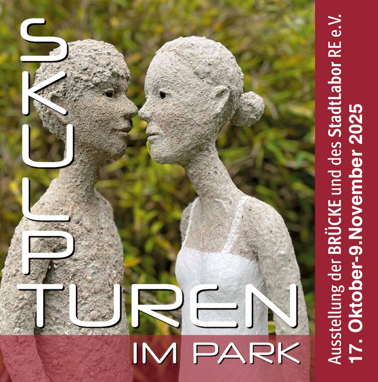 Die gemeinsame Ausstellung des Vereins StadtLabor RE und der BRÜCKE präsentiert bildhauerische Werke von 10 Künstlern und Künstlerinnen, darunter auch ein Bildhauer aus der Partnerstadt Schmalkalden sowie fotografische Arbeiten.